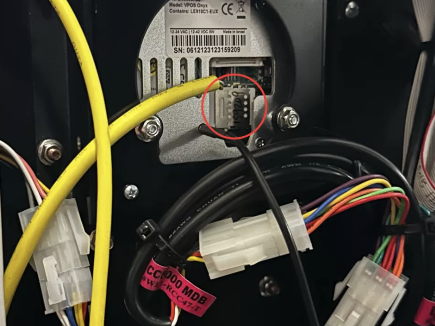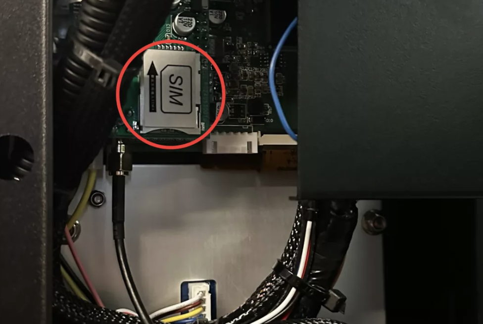 Beim 5-Zoll Modell sitzt die SIM-Karte auf der Rückseite des Nayax-Moduls. Zum Zugang muss das Modul vorsichtig nach hinten abgezogen oder aufgeklappt werden.
