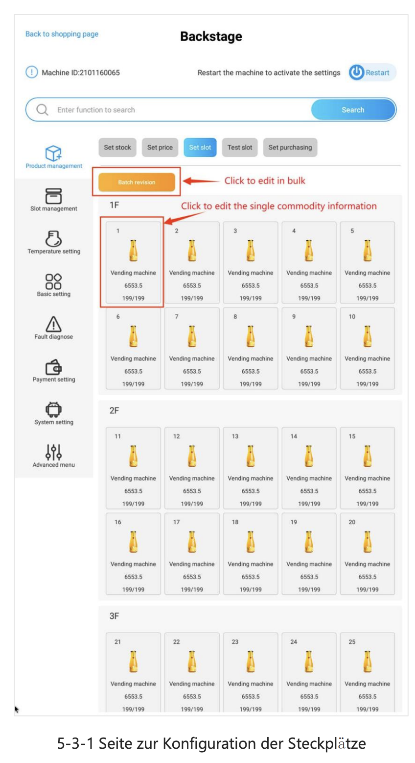 Einstellung: Produkt auswählen in “Product Management” dann “Set Slot” der Produkte