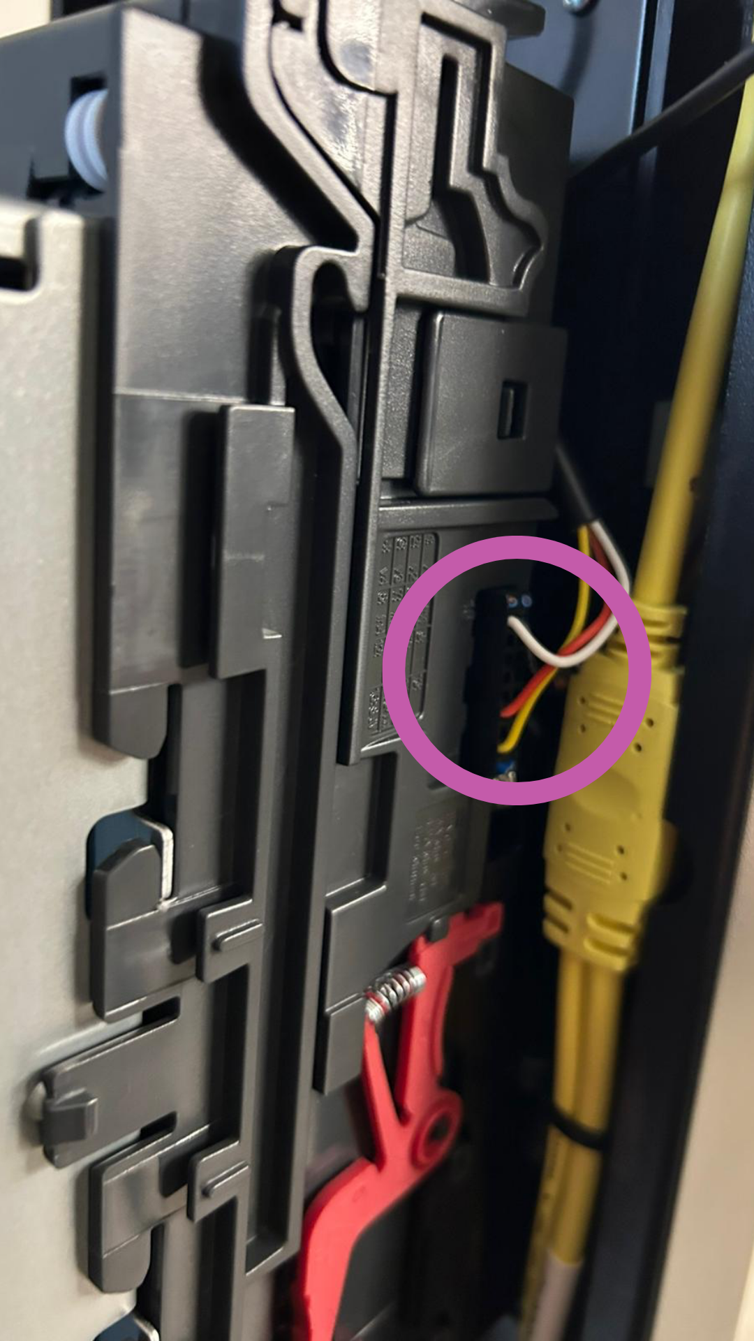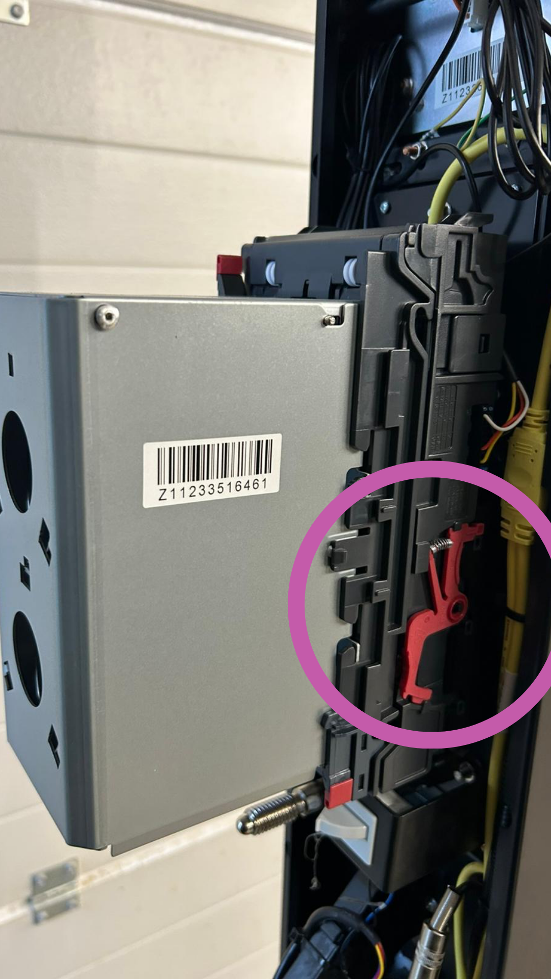 The NV9 is usually above the coin changer and is secured with a metal frame. Before starting, unplug the power cord or switch off the machine.